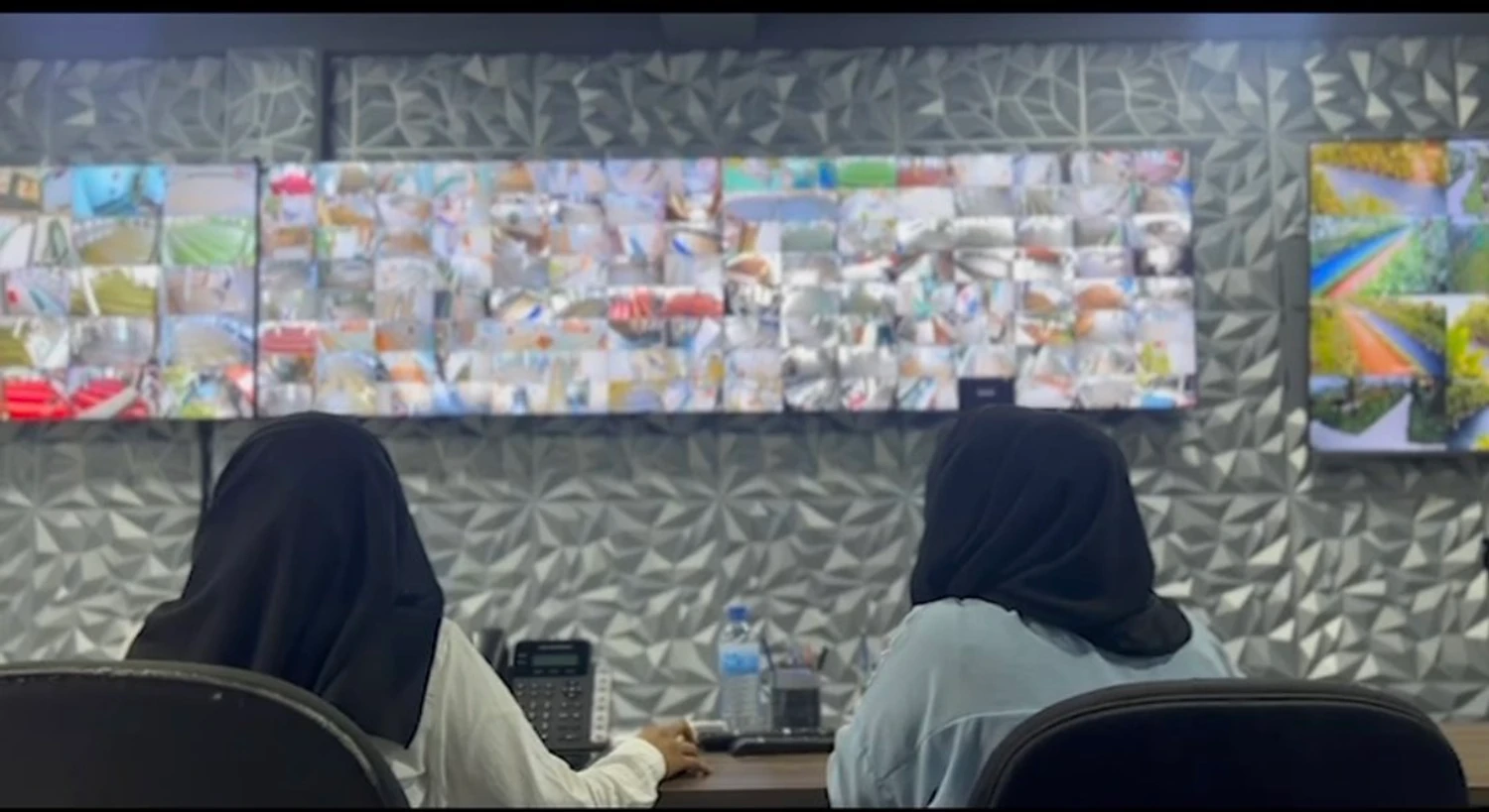 މާލެ ސިޓީ ކައުންސިލްގެ ސީސީޓީވީ މޮނިޓަރިންގް ސެންޓަރު ގައި މުވައްޒަފުން ޑިއުޓީ ކުރަނީ.